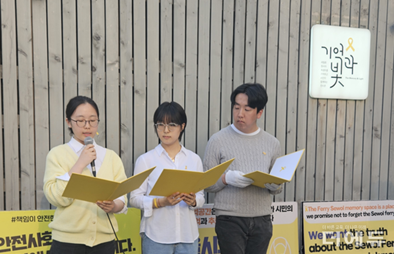남기윤 충남교육청 장학관 및 시민교육팀장은 “낮에는 학생들이 전원 구조 소식에 기쁜 마음으로 퇴근했는데, 저녁에 그렇지 않다는 사실을 알았다”며 “분노에 눈물을 흘렸던 기억이 지금도 생생하다”고 회상했다.
