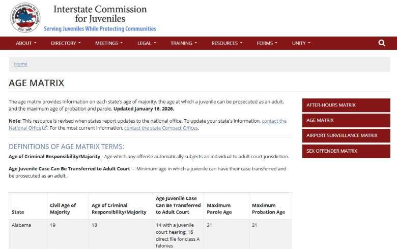 그래도 대부분 주는 형사상 성년 연령이 따로 있다. 보통 민사상 성인 연령과 비슷하고, 주로 18세이다. 일부 주를 제외하면 형사상 성년이 되기 전까지는 우리나라의 촉법소년이나 범죄소년처럼 성인 범죄자보다는 가벼운 처벌을 받는다.