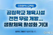 더에듀 지성배 기자 | 인천교육청이 내년부터 공립학교 운동장과 강당 등의 시설을 무료 개방한다. 교사들은 학교 현장 상황과 고충을 고려하지 않은 행정 폭력이라며 반발하고 나섰다. 인천시의회는 지난 9월 ‘인천광역시 교육비특별회계 소관 공유재산 관리 조례’를 개정, 공립학교 체육시설을 주민들의 생활체육 및 복지 목적으로 사용할 경우 기존 50%였던 사용료 감액을 전액 감면(냉·난방비 포함)으로 확대했다. 또 ‘학교시설 개방 및 이용에 관한 규칙’도 개정해 인천 지역 주민이 학교 체육시설을 우선 이용할 수 있게 했다. 당시 도성훈 교육감은 “학교가 교육 공간을 넘어 지역사회와 함께하는 열린 커뮤니티가 되어야 한다”고 강조했다. 개정된 조례는 내년 1월 1일부터 적용되며, 학교 시설 예약은 인천교육청 홈페이지를 통해 온라인으로 가능하다. 인천교육청은 현재 홈페이지에 학교시설 온라인 예약 서비스 개편을 위해 시스템을 12월 말까지 중단한 상태이다. 인천교사노조, 별도 협의나 논의 없어...“무책임한 행정 폭력” 시설 개방 전재는 '학생 안전'...4대 선행 조건 제시 인천교사노조는 25일 성명서를 내고 학생 안전 대책과 학교 자율성 없는 무분별한 학교 체육시설 개방