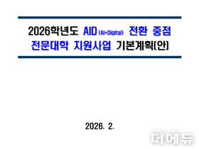 더에듀 지성배 기자 | 24개 내외 전문대학 사업단이 AID(인공지능(AI)+디지털(Digital) 전환을 추진한다. 정부는 사업단별로 최대 10억원을 지원한다. 교육부는 4일 이 같은 내용이 담긴 ‘2026학년도 에이아이디 전환 중점 전문대학 지원사업 기본계획’을 발표했다. 전문대학을 지역 기반 AI·디지털 교육 거점으로 육성해 재학생뿐만 아니라 지역주민과 재직자도 전문대학에서 AI를 배우고 활용할 수 있도록 하기 위함이다. 교육부는 총 24개 내외 전문대학 사업단을 선정할 예정이며 단독형 또는 연합형으로 신청이 가능하다. 사업단별 최대 10억원을 지원할 계획이며 AI 플랫폼·실습실 등 구축과 모듈형 굥규과정 개발·운영, AI 도구 구독료, 교직원 연수와 워크숍 프로그램 등에 사용할 수 있다. 수도권과 대구경북, 부산울산경남, 충청강원, 호남제주 등 5개 권역으로 나눈 뒤 권역별로 5개 내외를 선정한다. 오는 3월 초에 사업 공모가 날 예정이며 4월말까지 심사 및 선정, 5월 말부터 2028년 2월까지 사업이 시행될 예정이다. 주요 사업으로는 ▲인공지능(AI)·디지털 전환(DX) 환경 조성 ▲재학생·교직원·지역주민 맞춤형 인공지능(AI) 역량 강화 ▲대학별
