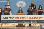 더에듀 지성배 기자 | 송수연 교사노동조합연맹(교사노조) 위원장 당선인의 첫 공식 행보는 행정통합 규탄 기자회견이었다. 송 위원장 당선인은 5일 국회에서 기자회견을 열고 행정통합이 속도전으로 흐르고 있어 교육자치의 근간이 흔들리고 있다며 입법 중단을 촉구하고 나섰다. 이번 기자회견에는 행정통합이 추진되는 대전·충남·전남·대구·부산 지역 교사노조 관계자들이 함께 했다. 송 당선인은 “교육감의 권한이 교육재정의 안정성이 지차제장의 권한과 조례로 넘겨지고 있다”며 “교육을 행정 편의의 영역으로 끌어들이는 위험한 시도”라고 비판했다. 이어 “교사, 학부모, 학생 등 교육 주체의 목소리가 배제된 현 상황은 민주적 절차의 결여”라며 “교육이 흔들리는 통합은 지속가능하지 않으며, 그 피해는 고스란히 지역 학생들에게 돌아갈 것”이라고 우려했다. 이윤경 대전교사노조 위원장은 “대전충남행정통합특별법안은 교육을 논외로 취급했다”며 불편함을 드러냈고, 김선희 충남교사노조 사무처장은 “전교생 60명 이하 학교가 전체의 3분의 1을 넘는데 법안은 오직 효율의 잣대만 들이대고 있다”고 비판했다. 이들은 구체적으로 ▲교육장 자격·임용 기준 조례로 위임 ▲특목고·영재학교 설립 권한 시장에